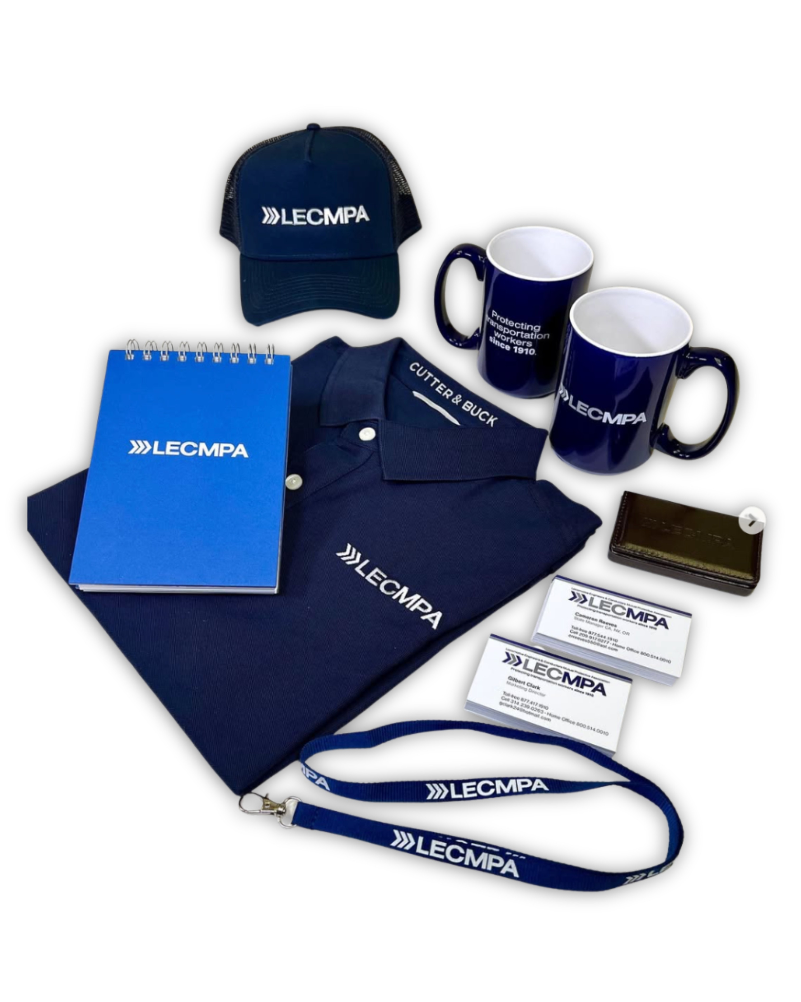 Our work included the development of practical, high-quality branded assets designed to support everyday interactions and in-person outreach. By establishing a cohesive identity system, Premier helped LECMPA communicate its commitment to union transportation workers with clarity, professionalism, and consistency.